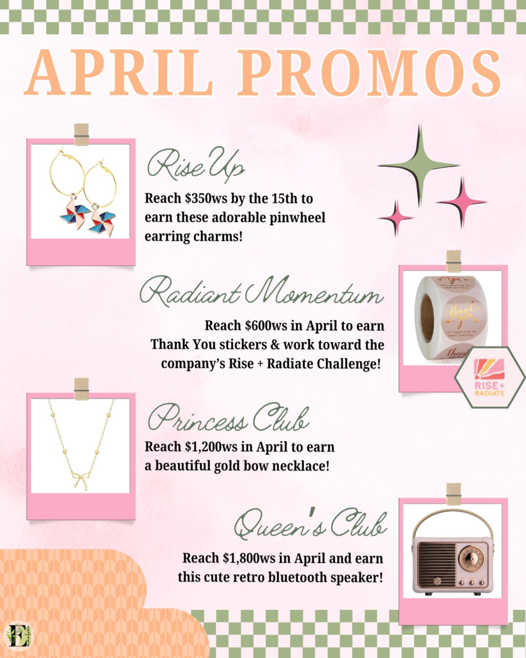 Prints to put in customer orders or hand out while warm chatting to invite to giveaways, freebies, or monthly promos.